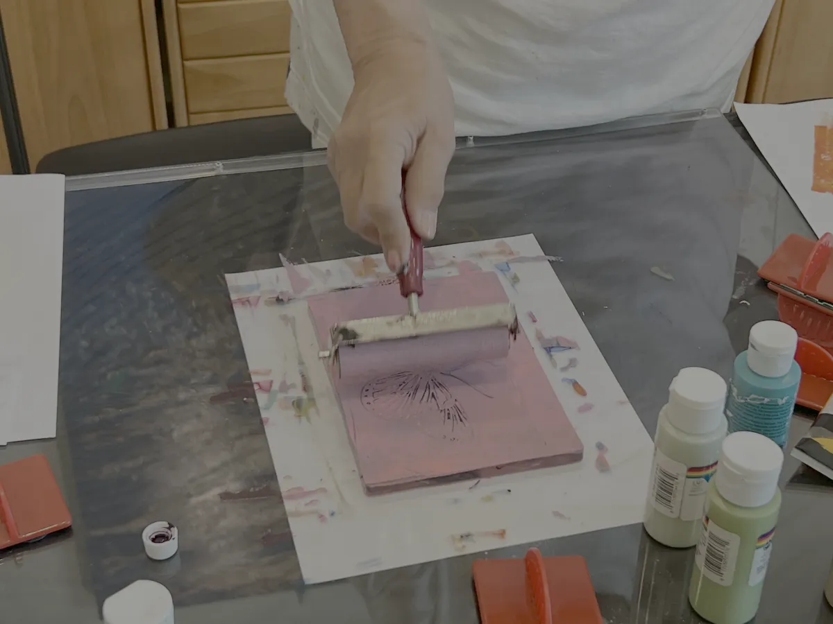 You’ll begin with a gelli printing demonstration, creating your own unique printed papers.